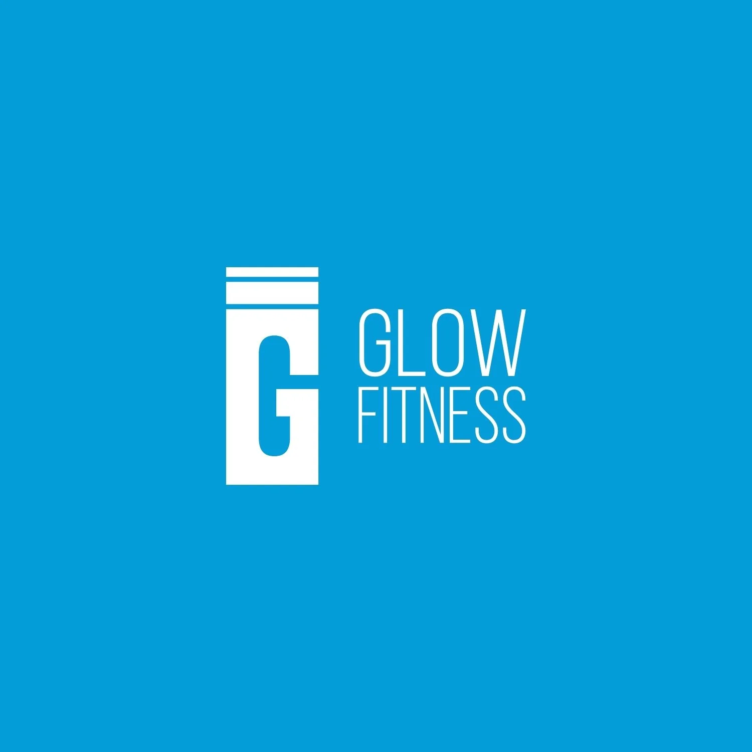 Nom de la marque "Glow Fitness" : Présenté sur deux niveaux pour renforcer visuellement l'idée de montée en puissance.