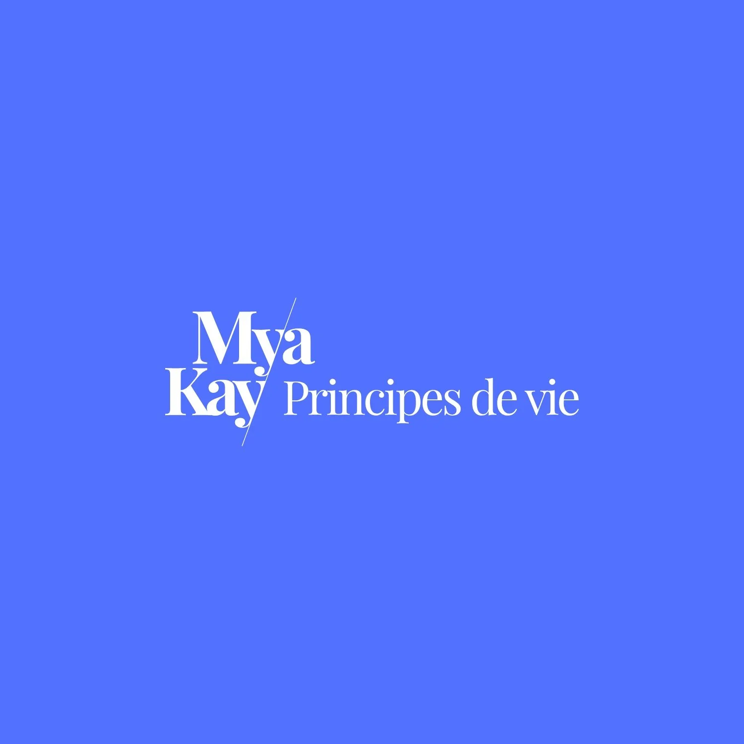 Une version secondaire du logo associe le nom "Mya Kay" à la phrase "Principes de vie", renforçant la dimension philosophique et les fondations solides de l’accompagnement. La même ligne diagonale assure une cohérence graphique avec le logo principal.